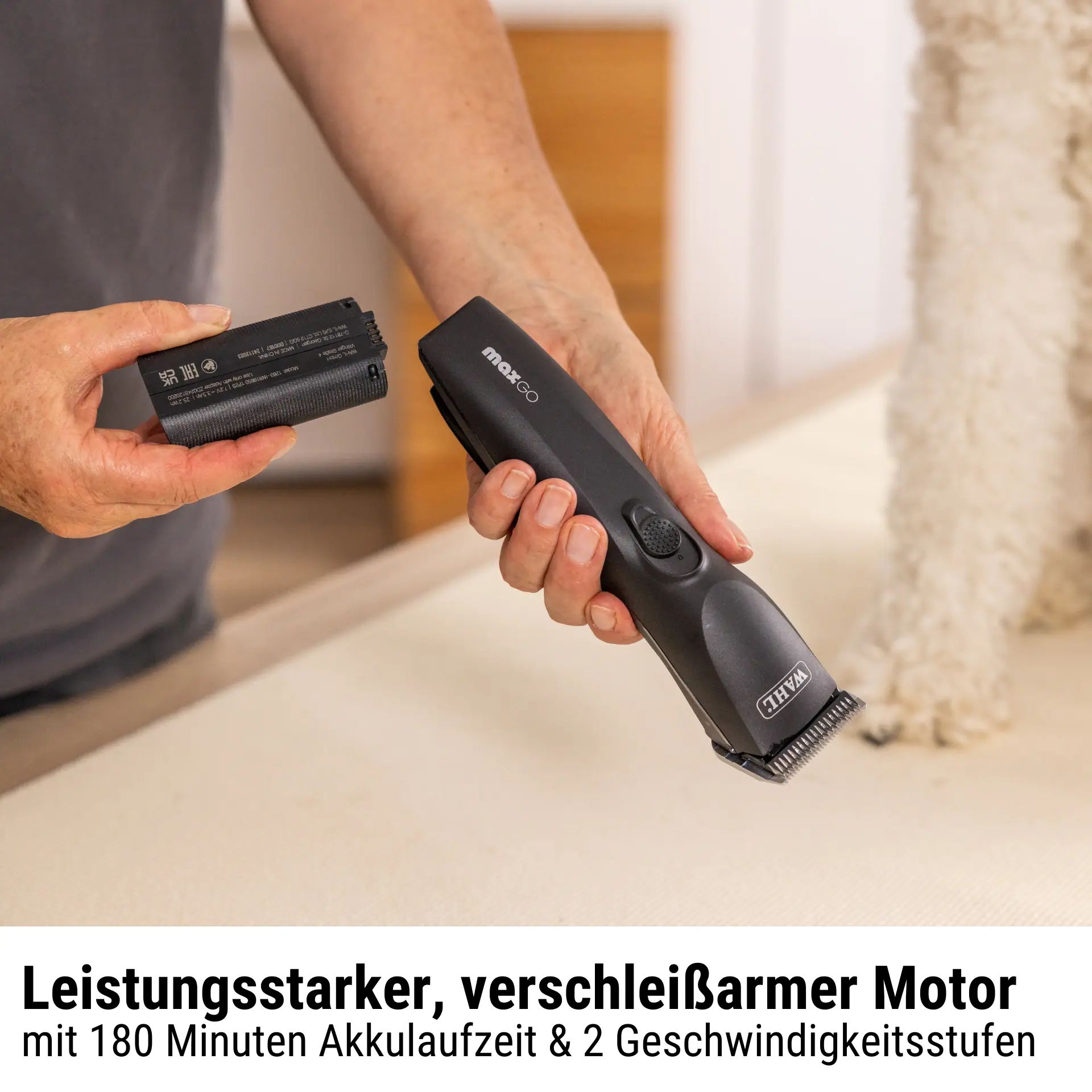 The WAHL MaxGo is the most powerful cordless clipper on the market. Its brushless motor with two speed settings ensures effortless grooming of both fine and matted fur. This machine is perfect for efficient care of all pets.