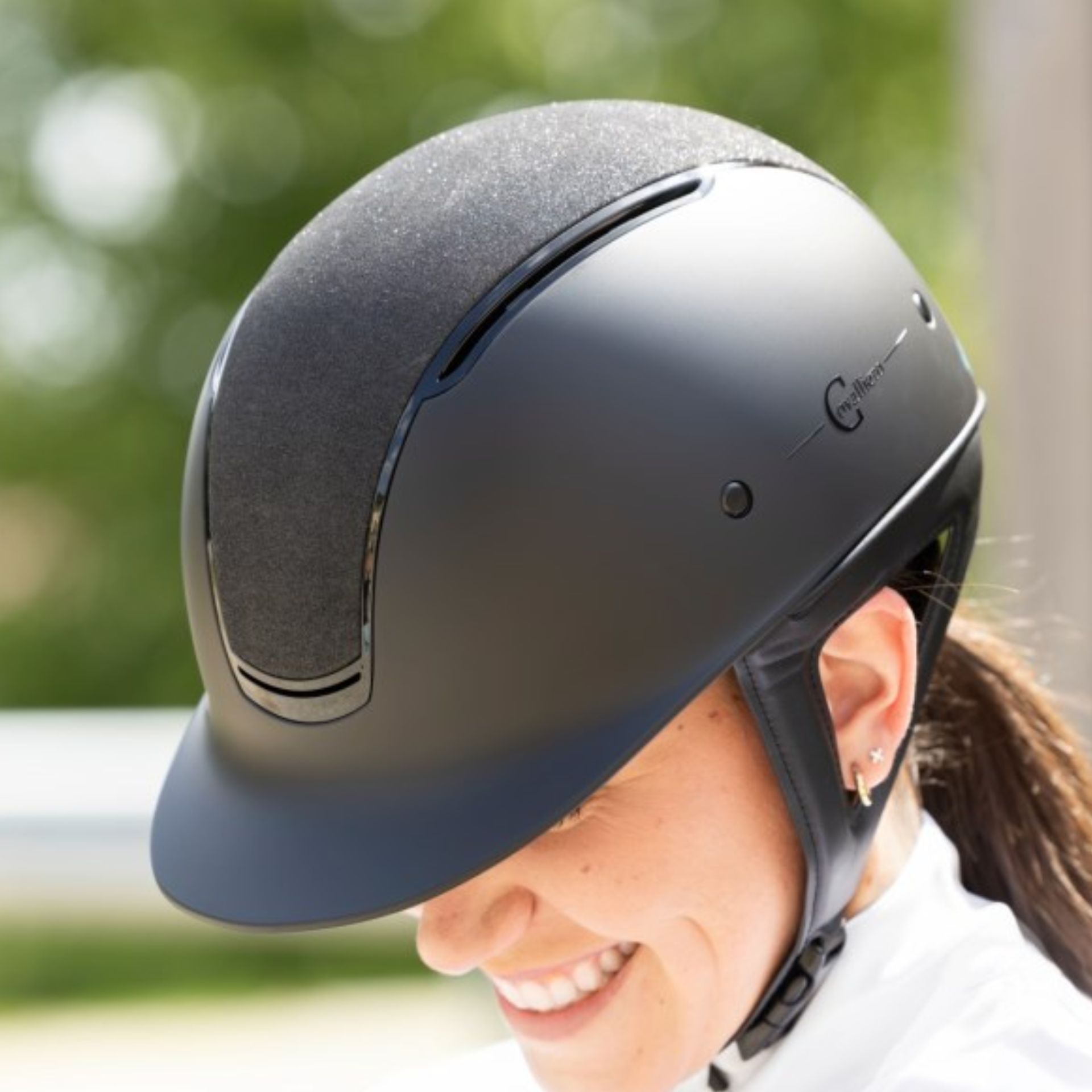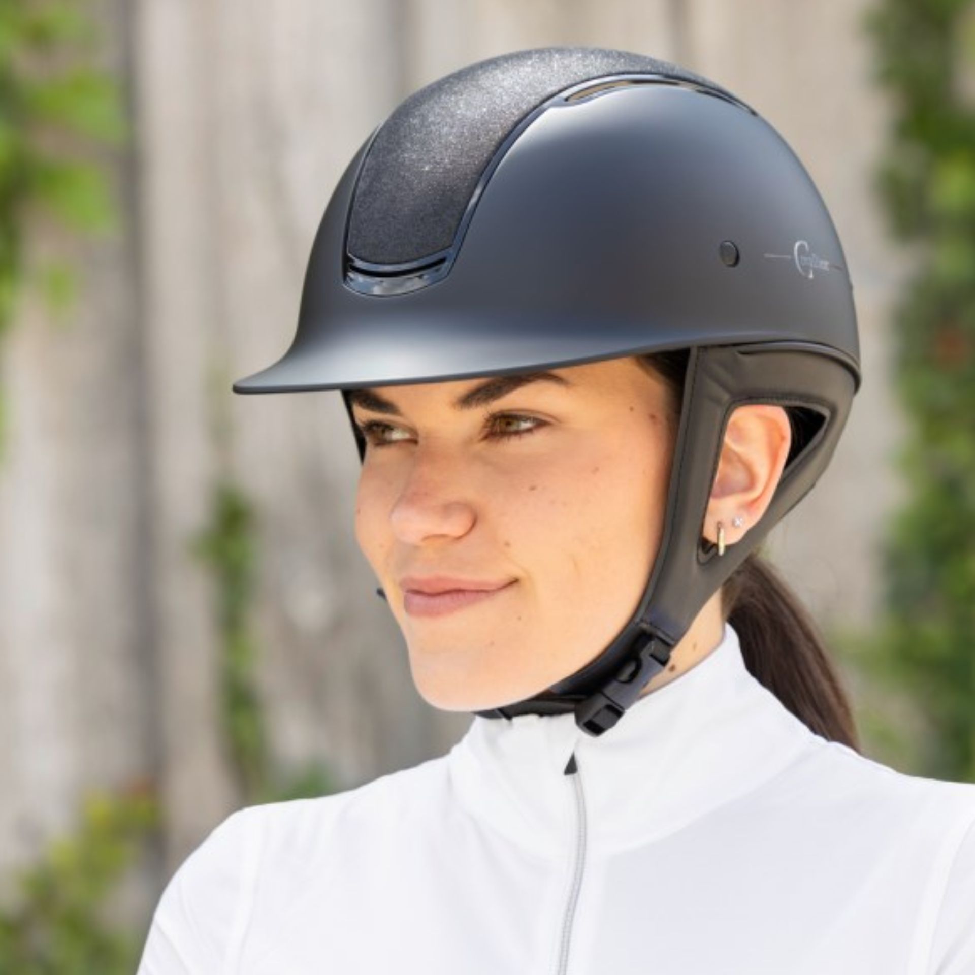 The Eclipse Riding Helmet combines safety and elegance in a timeless design. The classic, noble matte black look with glitter accents makes it a real eye-catcher in the riding arena. But this helmet is not only beautiful to look at; it also meets the highest safety standards. Thanks to the practical Disc System, the chin strap can be adjusted continuously with just one hand to fit your head size perfectly. This way, the helmet always sits just right, allowing you to focus entirely on your riding experience.