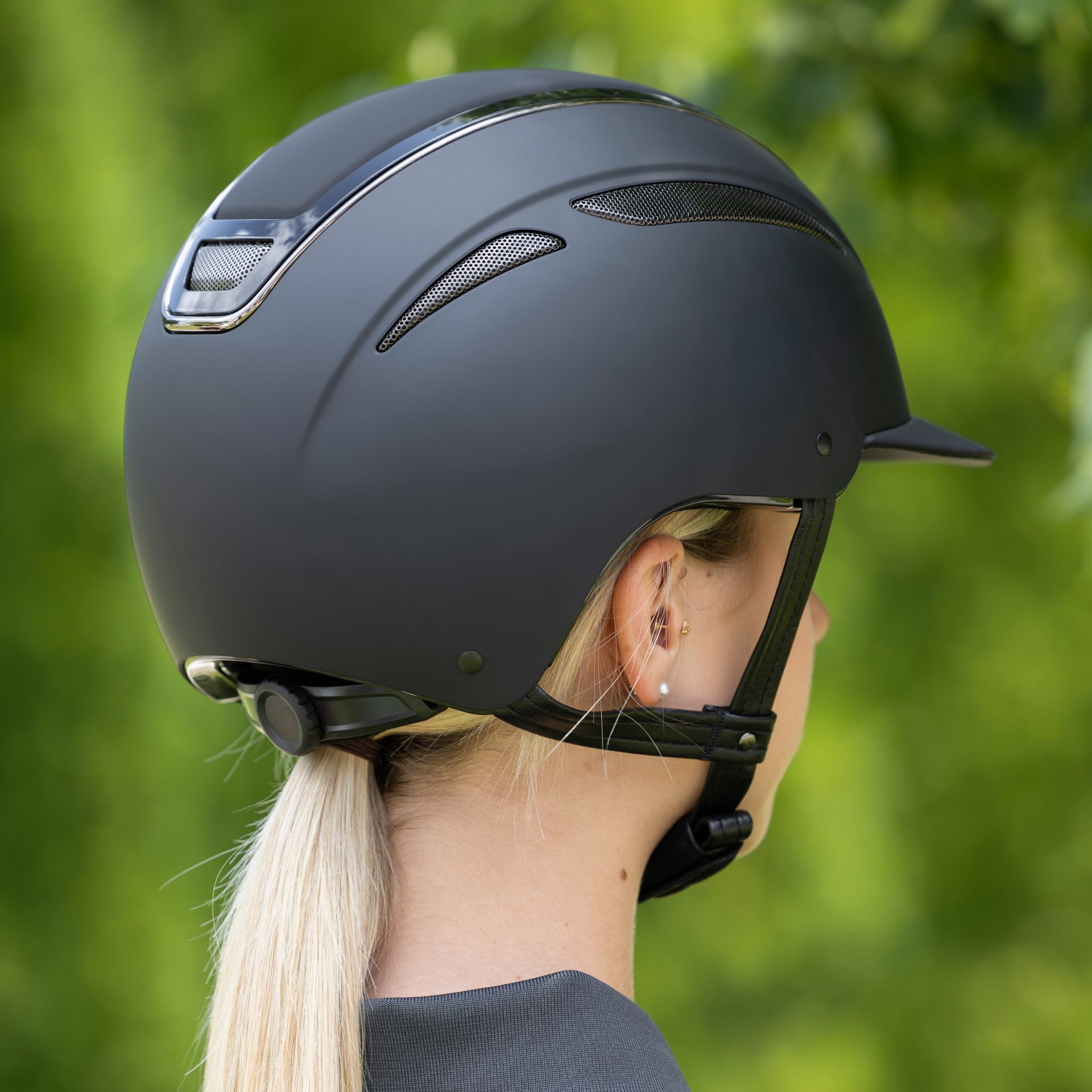 The Riding Helmet Elite combines elegant design with excellent functionality, ensuring that you ride not only safely but also stylishly. With its outstanding fit, it provides a comfortable wearing experience that lasts even during long rides. The soft and high-quality synthetic leather straps help keep the helmet securely in place and prevent slipping. Additionally, the disc system allows for one-handed, continuous adjustment of the headband to your head size – so the helmet always fits perfectly. Notably, the excellent ventilation system ensures an optimal climate under the helmet. Whether you're training or participating in a competition, you can fully concentrate on your performance. The softly padded inner lining is removable, making cleaning a breeze. The extra hard ABS helmet shell ensures the best possible protection. Tested according to the EN1384:2023 standard, the Riding Helmet Elite meets the highest safety standards, making it ideal for passionate riders. The Riding Helmet Elite is particularly suitable for riders who value safety and comfort without compromising on style. Whether you're an amateur or a professional, this helmet will accompany you on every ride.