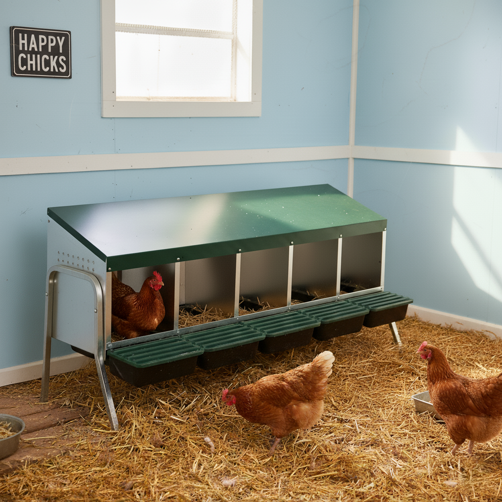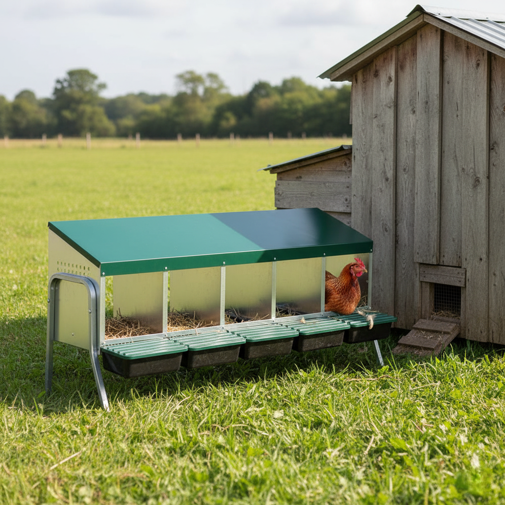 Utilizing high-quality weather-resistant material ensures that the laying nest is not only durable but also easy to care for. This creates not just a practical but also a secure retreat for your chickens. Ideal for those who value animal welfare and want to provide their animals with a pleasant environment.