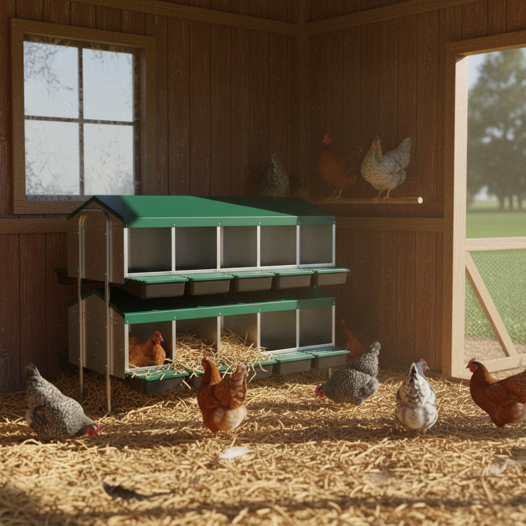 Using high-quality weather-resistant metal ensures that the stacked laying nest is not only durable but also easy to care for. This creates not just a practical but also a secure retreat for your hens. It is ideal for those who prioritize animal welfare and want to provide their animals with a comfortable environment.