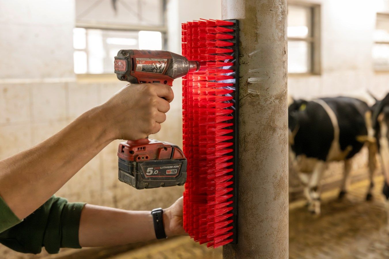 The flexible scratch brush allows for species-typical rubbing on the head and body sides, ensuring optimal coat care. Thanks to its 3-part construction, it can be mounted flexibly – whether flat against the wall or around corners and posts. With dimensions of 30 cm x 43 cm, it fits into any stable and is ideal for cattle, calves, horses, zebras, alpacas, and llamas. Made from high-quality polyamide, it offers durability and easy installation with the included mounting materials.