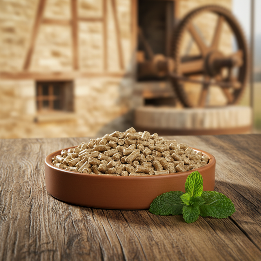 Minipigfodret består till 100 % av produkter från ekologiskt jordbruk och innehåller värdefulla näringsämnen som kalcium, fosfor och essentiella vitaminer.