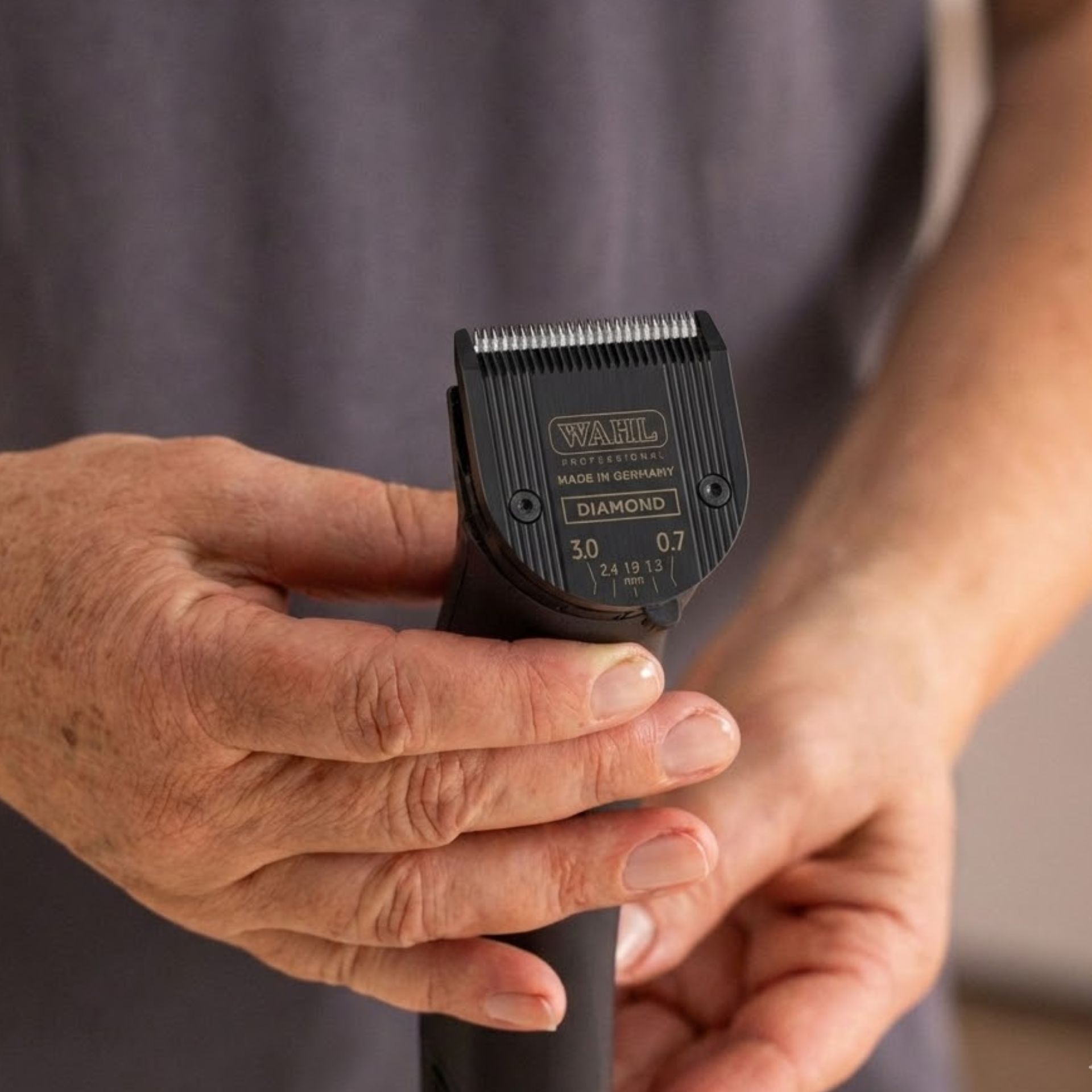 Det avtagbara Diamond Blade tillverkas i Tyskland av diamantslipat, rostfritt stål och övertygar med lång livslängd och justerbara klipplängder från 0,7 till 3 mm direkt på bladet. Den fina tandningen och den avancerade kolbeläggningen möjliggör ännu bättre klippprestanda, ökad hållbarhet och särskilt enkel rengöring.