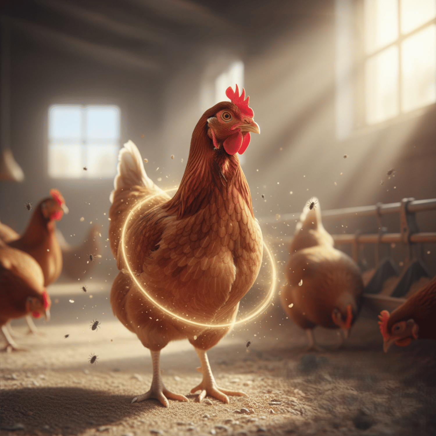 Hönsfodret har en anti-protozo effekt och är verksamt mot kokcidier, kryptosporidier och andra patogena encelliga organismer.