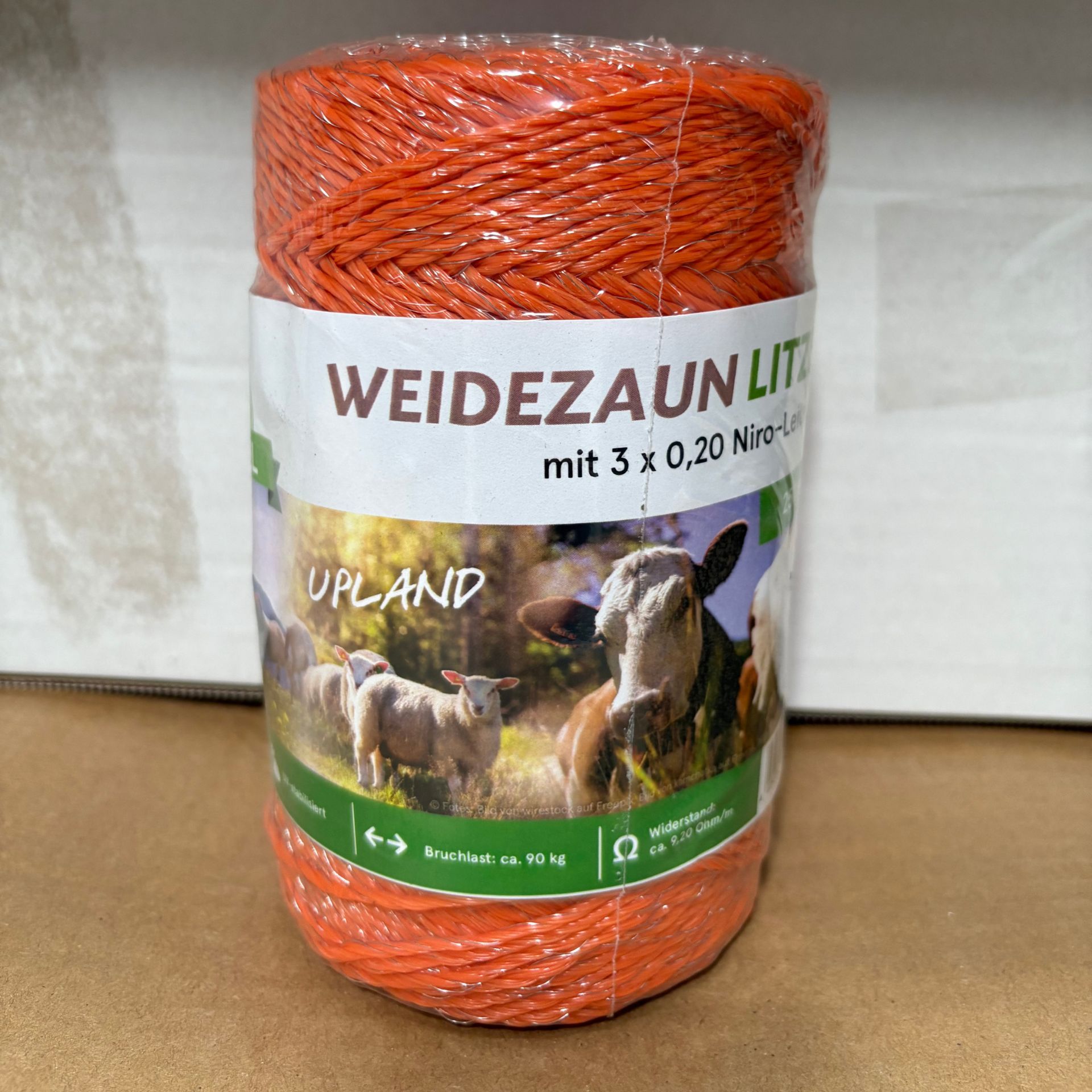 1x Plasttråd orange 250 m 3 rostfria ledare