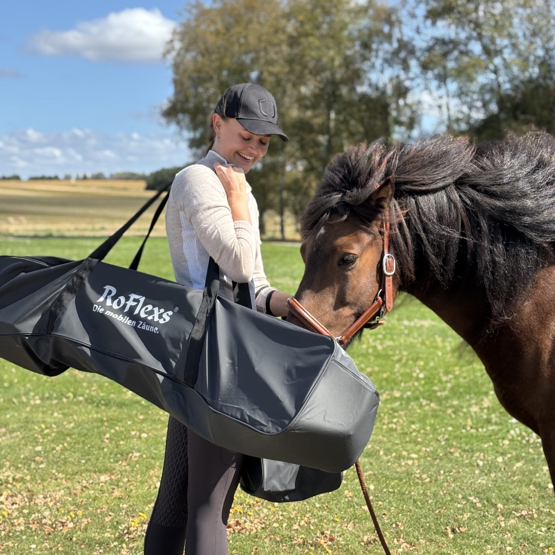Den genomtänkta storleken ger dig tillräckligt med plats för fyra RoFlexs 145 stängselstolpar, så att du kan packa allt kompakt. Det betyder mindre släpande, mer komfort och framför allt: inga lösa stolpar i bilen eller släpet längre. Den vattenavvisande egenskapen är särskilt praktisk – din utrustning håller sig torr och skyddad även när det regnar.