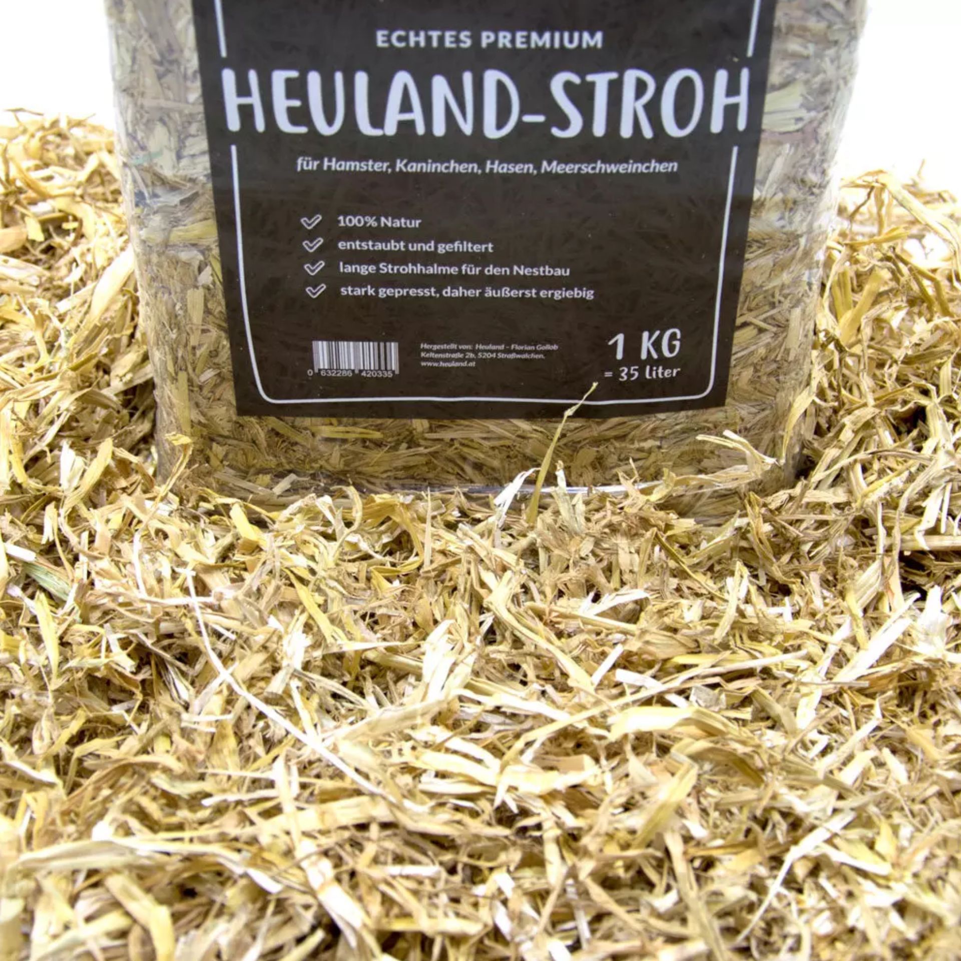 Letar du efter den perfekta ströbädden till dina små vänner? Med Heuland Strå från vårkorn skapar du ett mysigt hem där hamstrar, kaniner och marsvin trivs som bäst. Strået är mjukare än vanligt strå och inbjuder till att bygga bo. Dessutom är Heuland Strå skuret, vilket underlättar bobygget och håller torrt upp till 5 gånger längre än oskuret strå.
