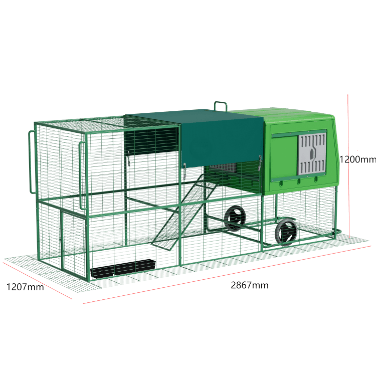 - Mycket rörelsefrihet: Tack vare längden på 2,80 meter har dina höns tillräckligt med utrymme inuti för att sprätta och vila – särskilt viktigt på regniga dagar.