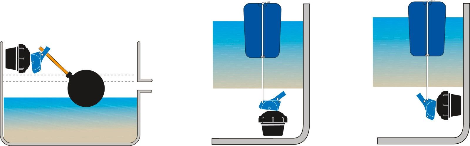 Du kan ändra vattennivån med den höjdjusterbara flottörarmen och dessutom anpassa fyllnadsnivån genom att justera snörets längd.