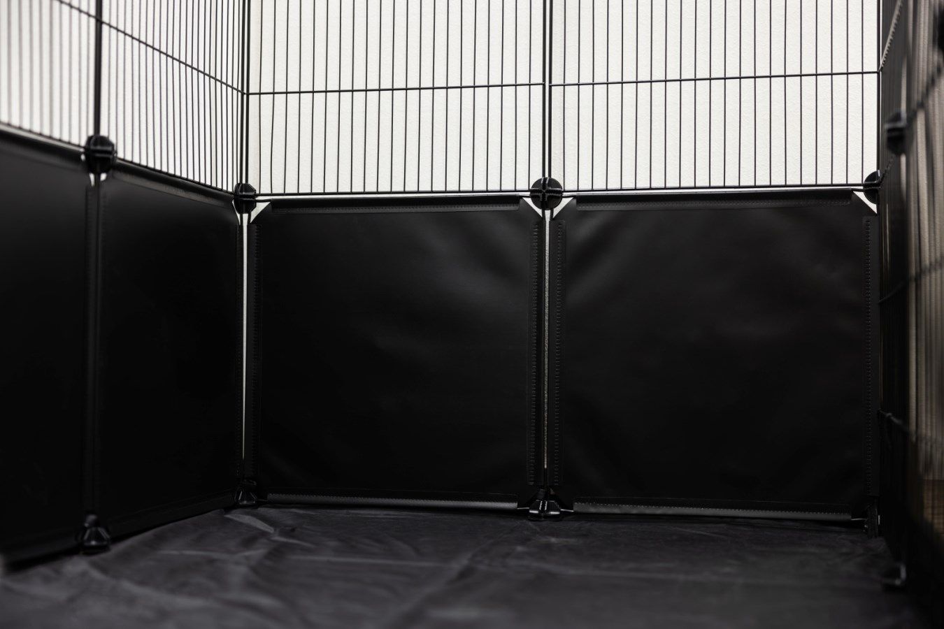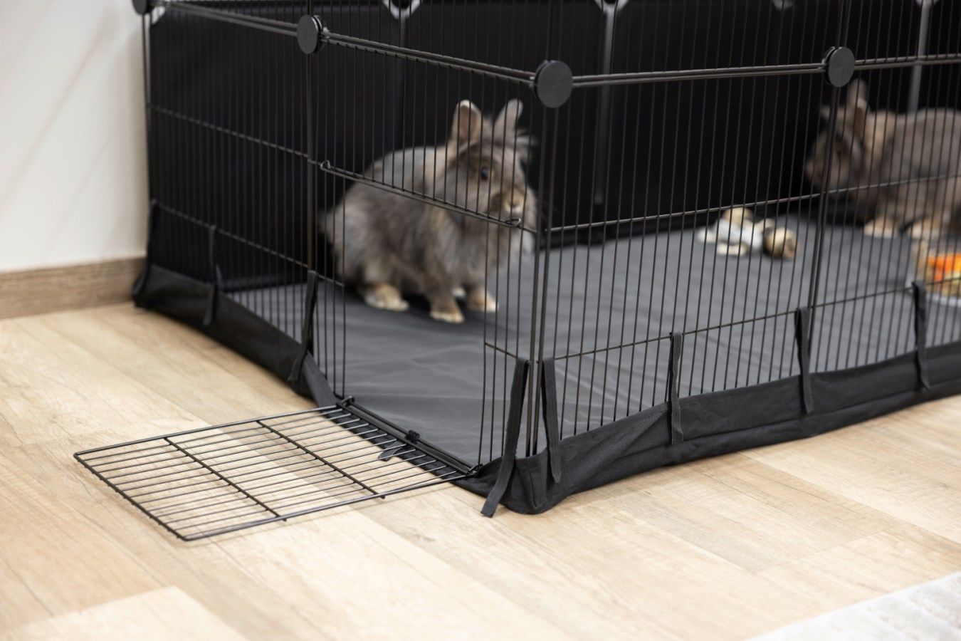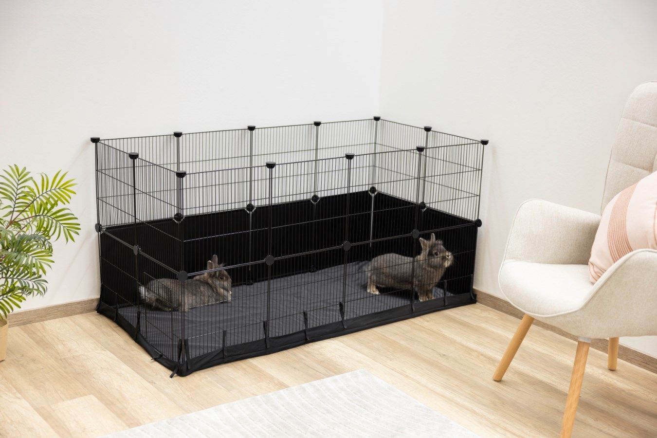 I vardagen imponerar systemet med sin flexibilitet, eftersom du enkelt kan flytta den lätta hagen eller bygga ut den via den integrerade dörren. Det täta galleravståndet gör hagen helt säker även för unga djur och ger trygghet från första stund. På så sätt skapar du en hygienisk miljö där dina djur kan springa fritt, samtidigt som dina väggar och möbler förblir perfekt skyddade.