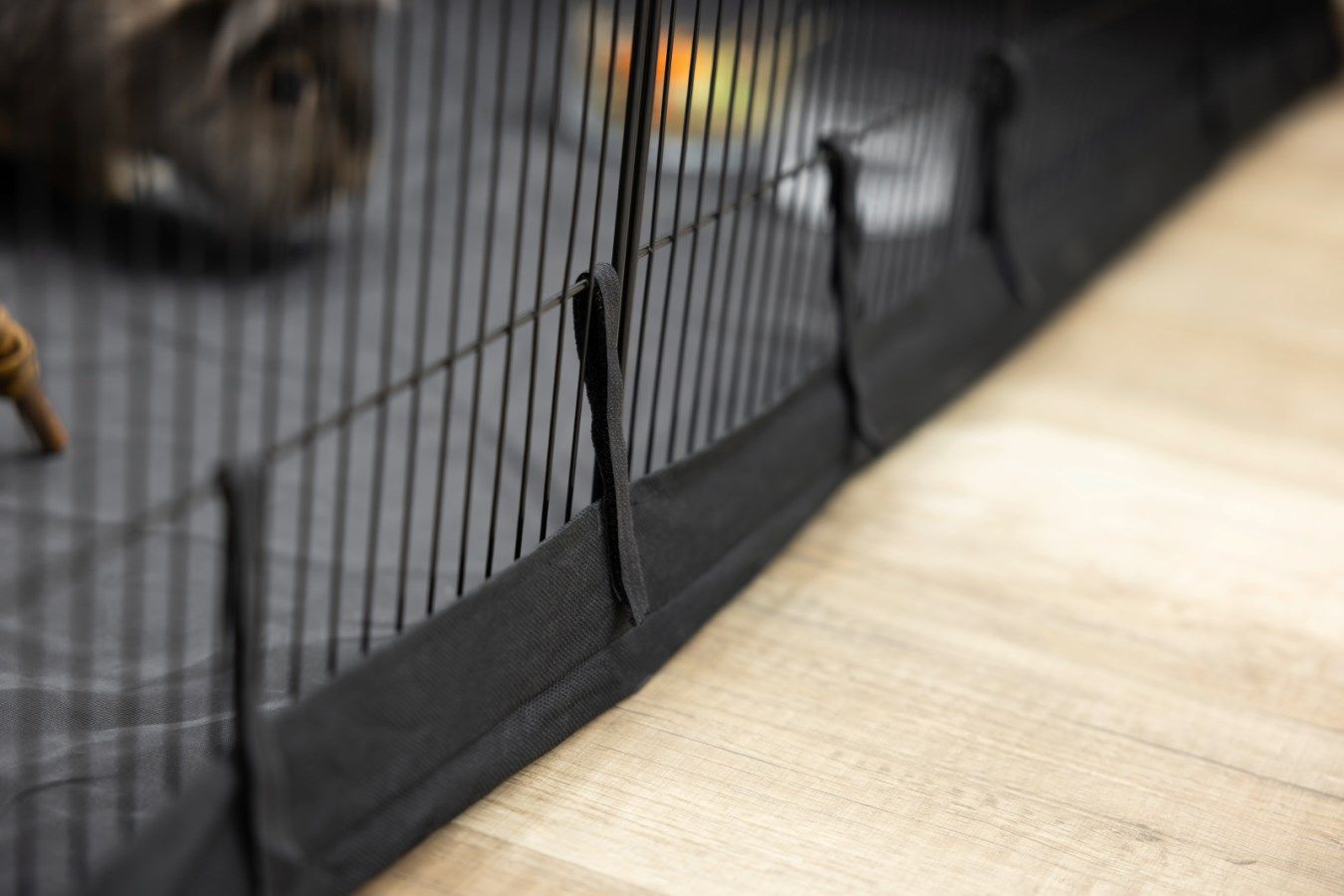 Den extra höga konstruktionen förhindrar effektivt att nyfikna klättermästare lämnar hagen på egen hand. Den integrerade nylonbottnen skyddar dina golv mot repor och smuts, och är dessutom enkel att torka av efter användning. Tack vare de stabila plastkopplingarna monterar du hagen på ett ögonblick helt utan verktyg, så att dina gnagares nya hem är redo att användas direkt.