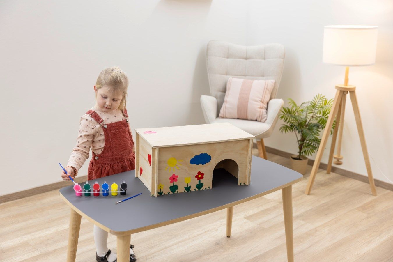 DIY Gnagarehus i trä för målning, inkl. 6 färger – Kreativ fristad och pysselglädje för stora och små