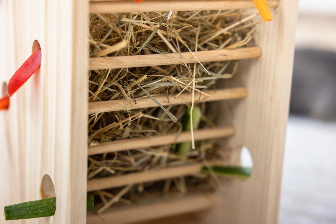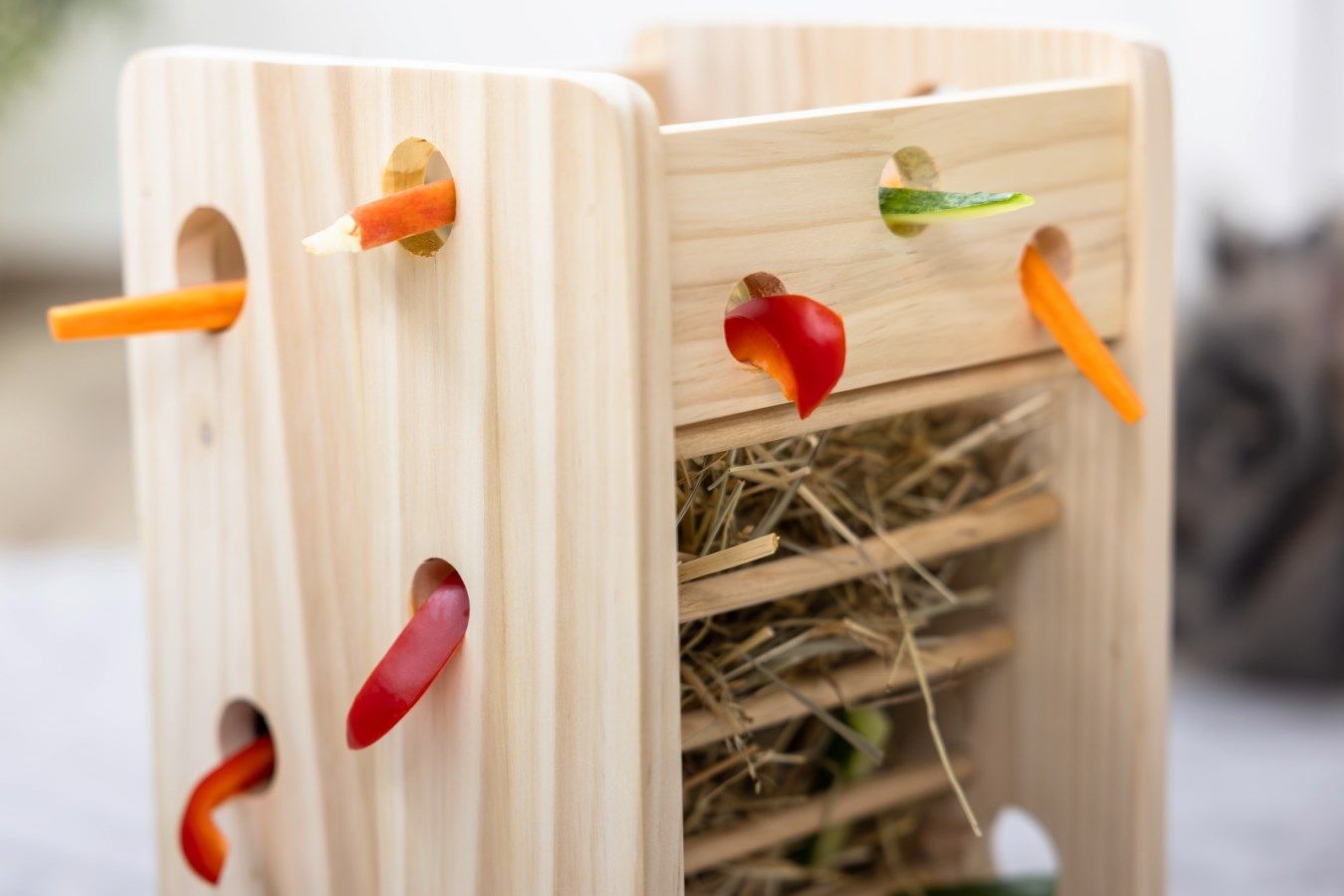 Hötorn & Grönsakstorn för gnagare i trä – lekfull och hälsosam variation vid foderplatsen