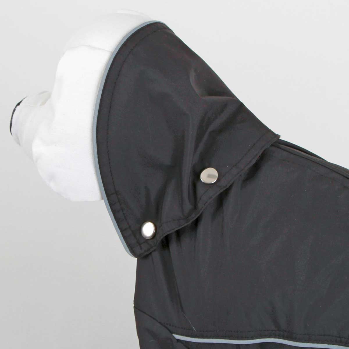 Tack vare den tåliga Manchester-regnrocken kommer din hund att hålla sig torr även på våta dagar. Reflexremsan på bakfickan ger optimalt skydd i mörker.