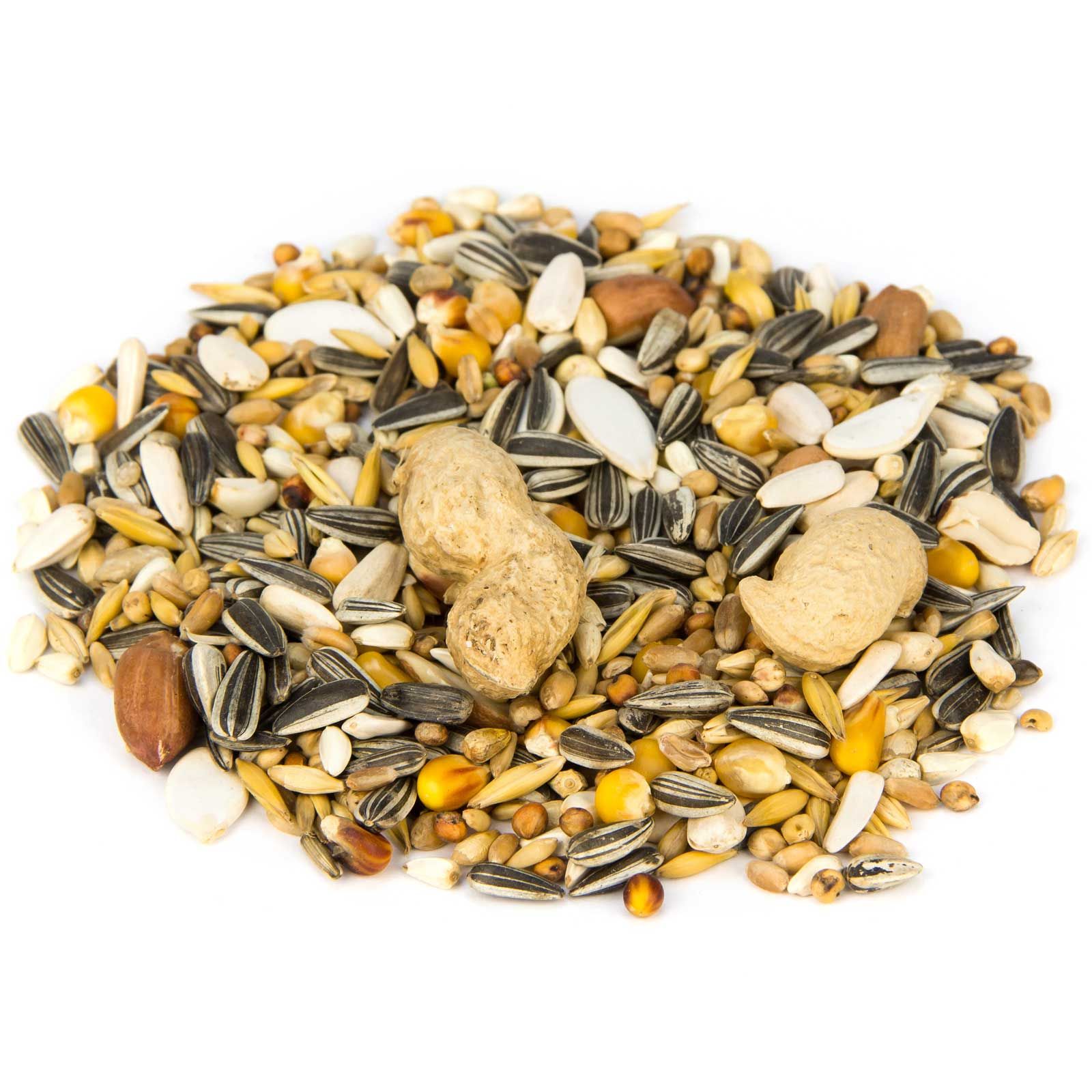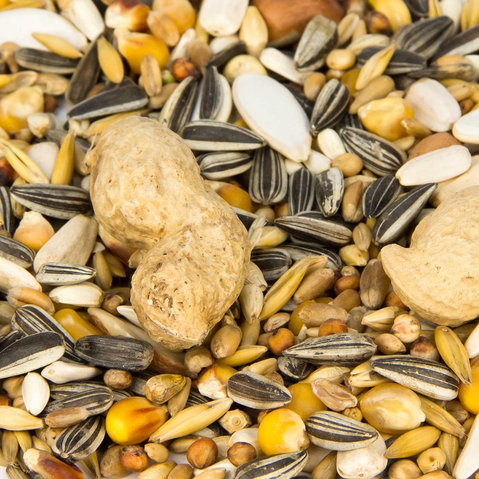 23 % randig solros, 5 % vit solros, 10 % liten majs, 7 % havre, 7 % havregryn, 7 % maltkorn, 12 % vete, 4 % milokorn, 2 % hampa, 10 % hjärtfrö, 5 % Dari, 2 % vita pumpafrön, 1 % små ärtor, 2 % jordnötter, 5 % vit solros, 3 % rött skal.