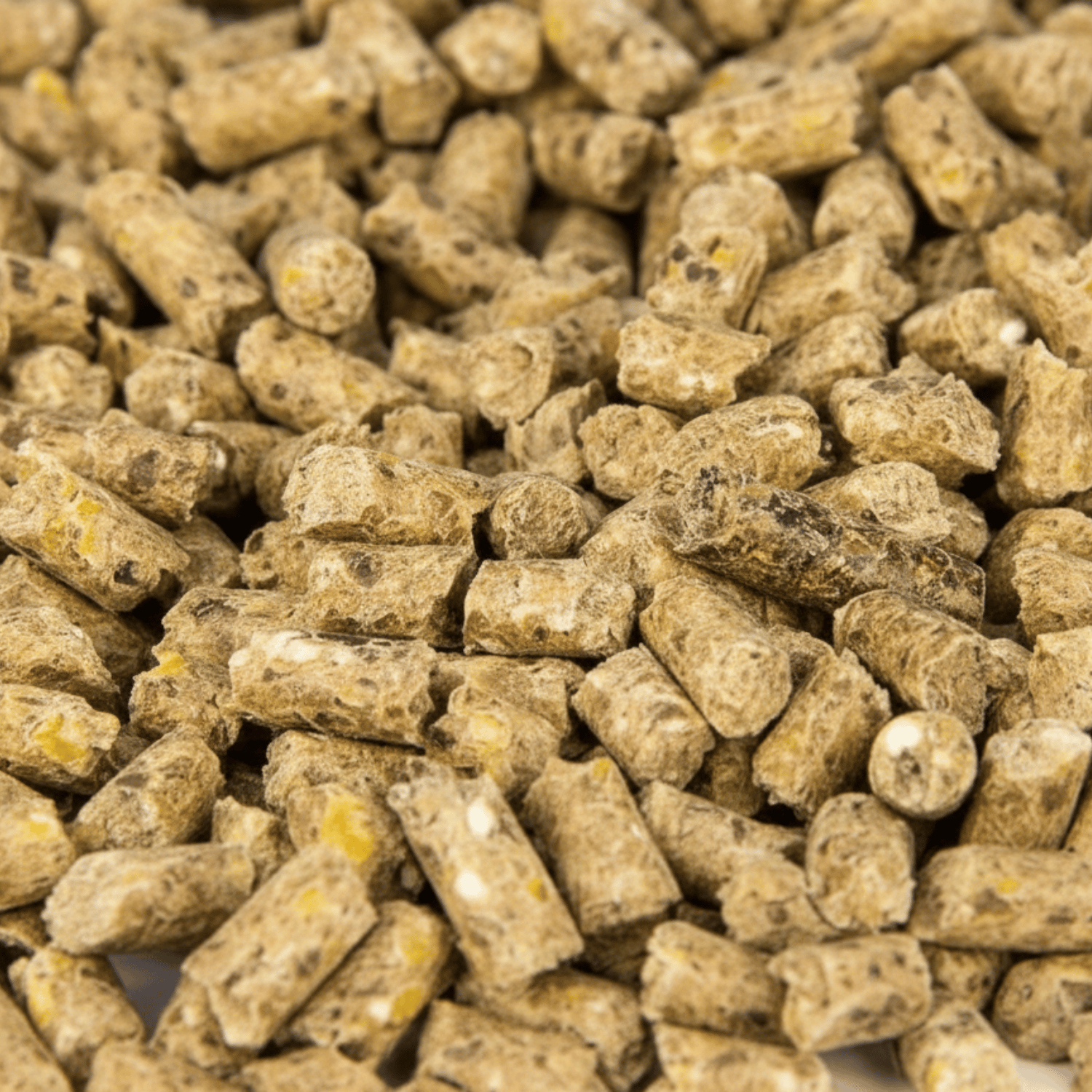 Majs, fint vetekli, sockerbetsmelassmassa, grönt mjöl, korn, kalciumkarbonat, majsglutenfoder, sockerbetsmelass, monokalciumfosfat, sojabönor, natriumbikarbonat, blandat fett (vegetabiliskt), natriumklorid, magnesiumoxid, jästcellväggar spraytorkade
